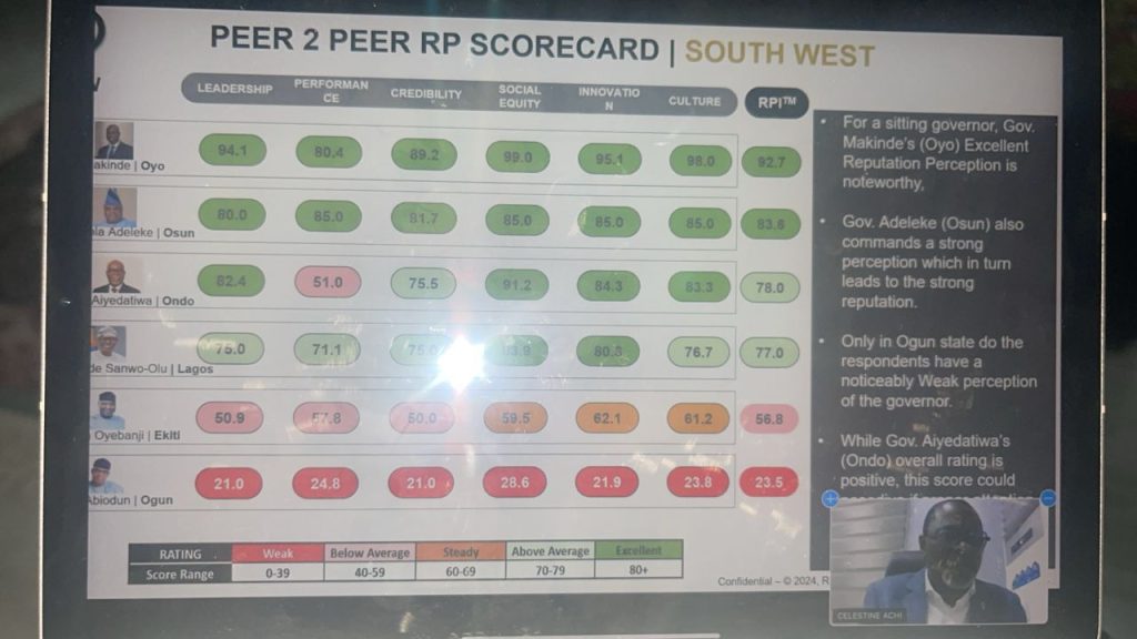The NIPR said its Reputation Performance Index on Nigerian Political Governance 2024, was a result of a thorough evaluation of governors’ performance across various sectors, including infrastructure development, economic growth, education, healthcare, and social welfare.