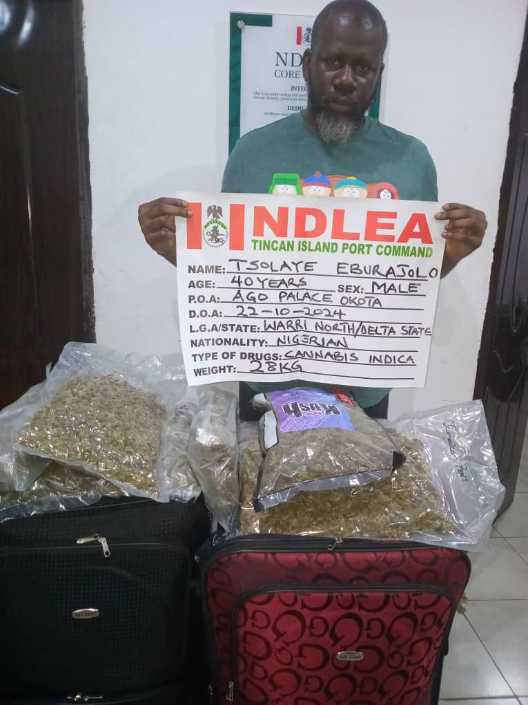 Eburajolo, a 40-year-old man, was arrested in the Ago Palace area of Okota, Lagos, in connection with drugs intercepted by the officials.