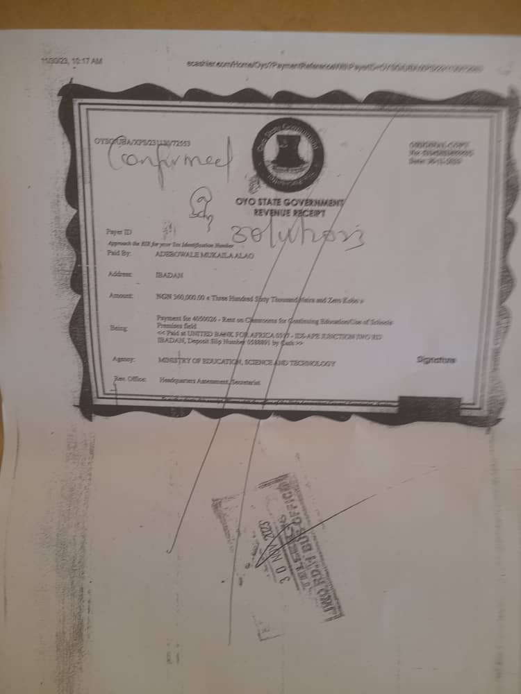 “Last year the radio station paid a sum of N360,000 to use the school premises through one Adebowale Mukaila. The state government has been collecting money from event organisers who want to use the school. it is not the principal.